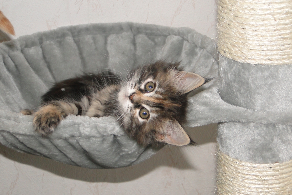 Elle est très joueuse et à une pêche d'enfer. Elle court partout, embête tantôt Irkhan tantôt Isidor.